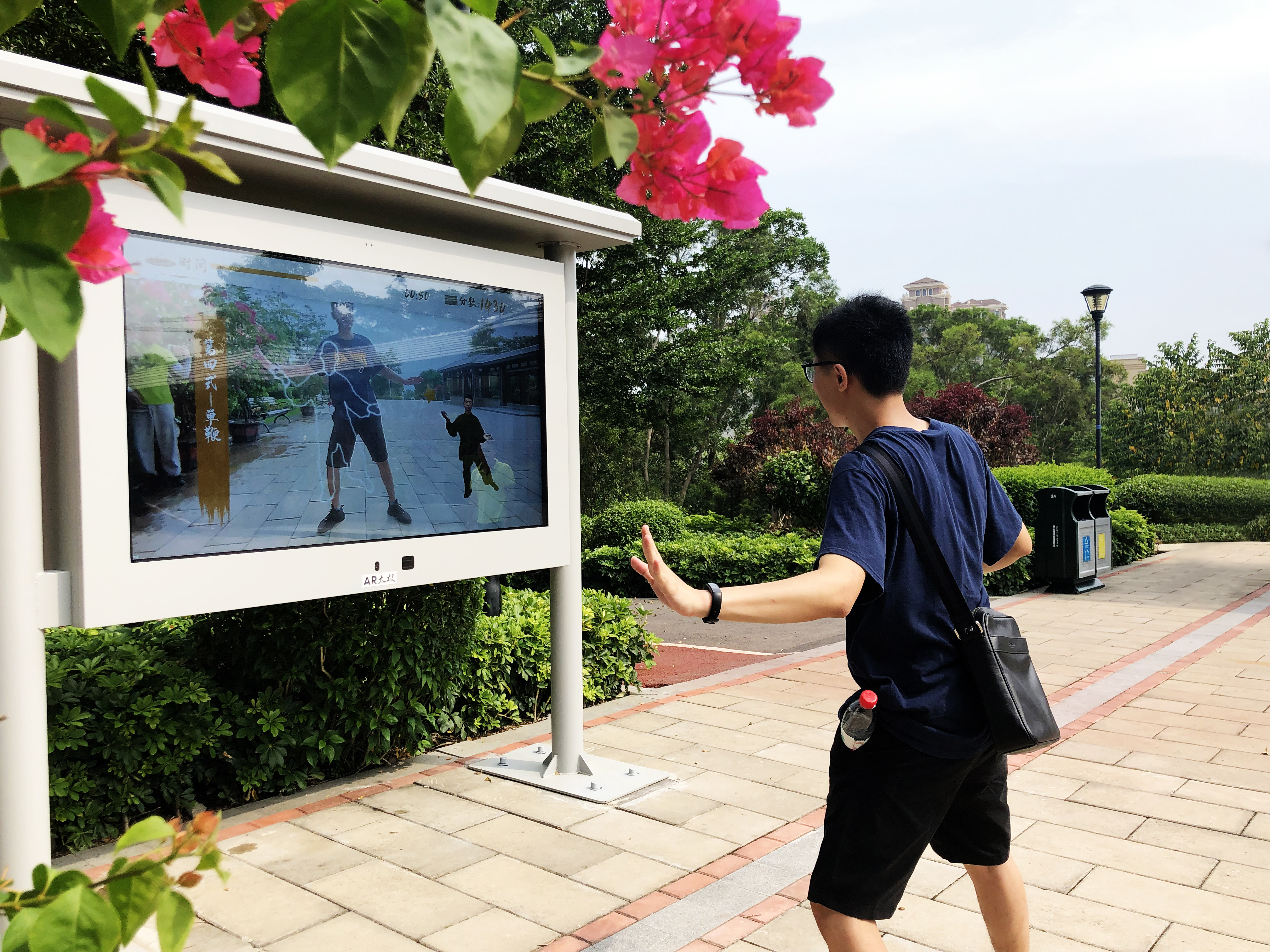 由北京分形科技承建的AR太極設(shè)備成功落地薛嶺山公園,此設(shè)備一經(jīng)落地,深深的吸引了每一位游客,無(wú)論是孩童,還是成年男女,抑或是老人,都忍不住停下來(lái),觀賞并體驗(yàn)這個(gè)“新鮮物”。此設(shè)備把太極拳和AR技術(shù)相結(jié)合,實(shí)現(xiàn)面對(duì)面教學(xué)。市民、游客可跟隨畫(huà)面指引體驗(yàn)太極招式。AR會(huì)自動(dòng)識(shí)別市民、游客動(dòng)作,并打出分?jǐn)?shù),讓大家聯(lián)系太極拳的動(dòng)作規(guī)范,進(jìn)而實(shí)現(xiàn)強(qiáng)身健體的目的。做得好的體驗(yàn)者還可觸發(fā)系統(tǒng)自行拍照并生成二維碼,留存和分享自己的照片。
